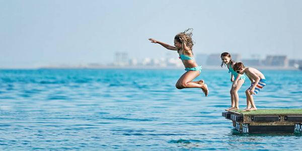 Το αίσθημα του φόβου μειώνεται αν το παιδί αισθανθεί ότι βρίσκεται σε οριοθετημένο περιβάλλον. Η θάλασσα μπορεί να είναι πολύ αχανής για το παιδί και να το φοβίσει. Δοκιμάστε τη πισίνα ή θάλασσα με πολύ κόσμο γύρω. Αν πάλι εσείς οι γονείς δημιουργήσετε ένα ανθρώπινο «σύνορο» για το μικρό σας ακόμα καλύτερα!